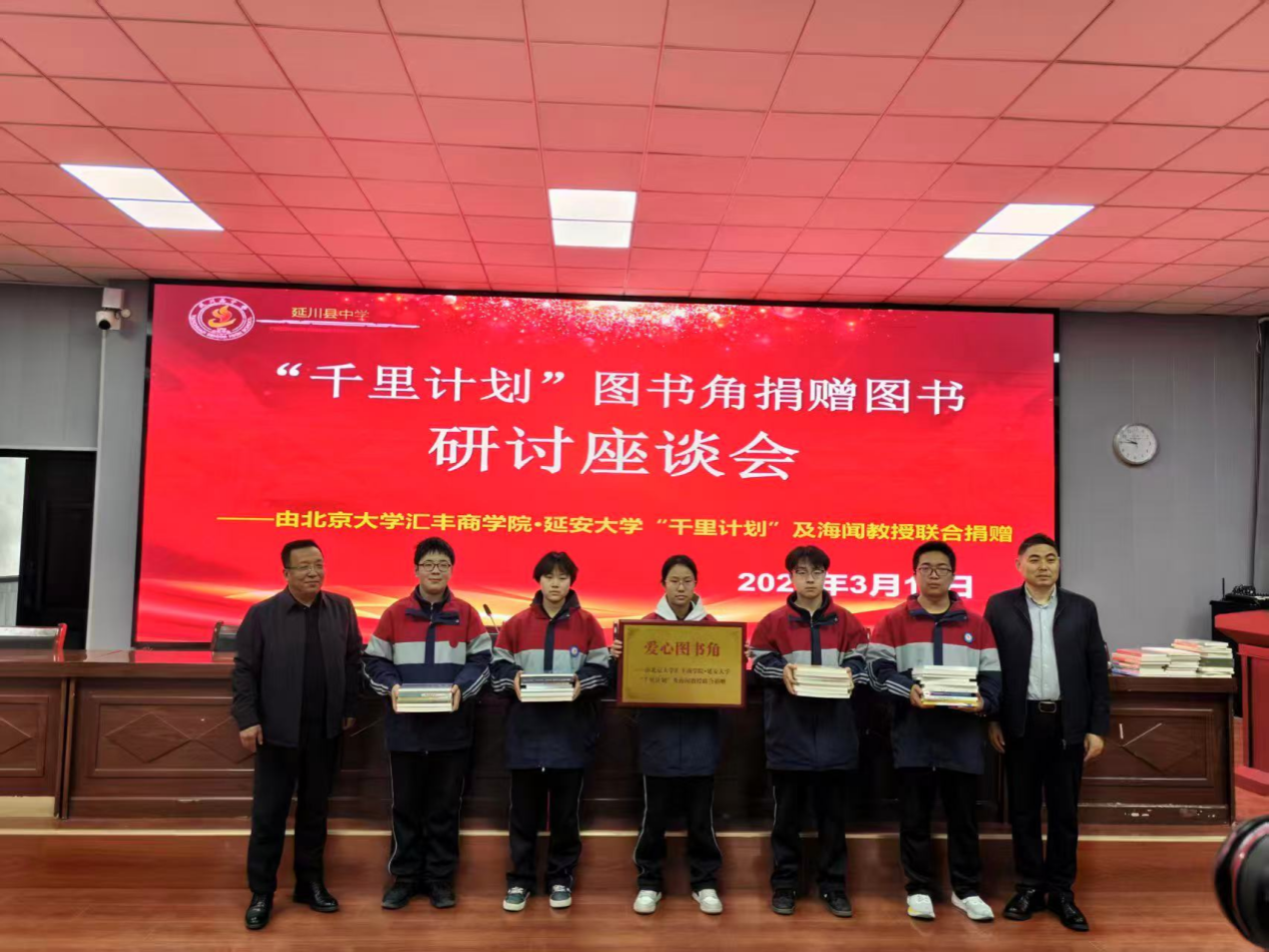 2026年3月13日上午,北京大学汇丰商学院、延安大学乡村发展研究院“千里计划”爱心图书捐赠仪式在延川中学会议厅举行。延安大学乡村发展研究院常务副院长陈云桥及师生代表,延川中学校长王永江等校方人员出席仪式。